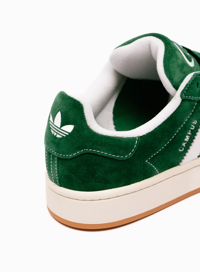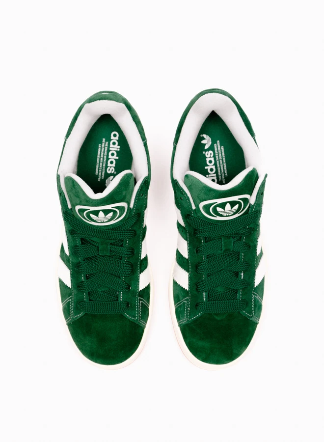The adidas Campus 00s sneakers in Dark Green / Cloud White / Off White (style code H03472) offer a modern twist on a classic silhouette. Made from premium suede and leather, this bold design features chunky details and strong streetwear appeal. Included are three sets of laces – thick green, thick white, and standard green – giving you full freedom to customize your style.