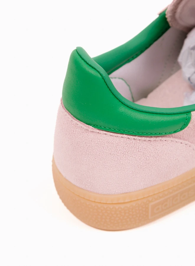 The adidas Originals Handball Spezial W Clear Pink / Green pays tribute to the handball heritage of 1979 while reimagining it for modern streets. The fresh pink and green suede upper, accented with gold details, creates a bold vintage look. The T-toe box and classic gum sole underline the timeless style you can easily pair with your favorite outfits. Whether you prefer sporty or casual, these sneakers elevate every look.