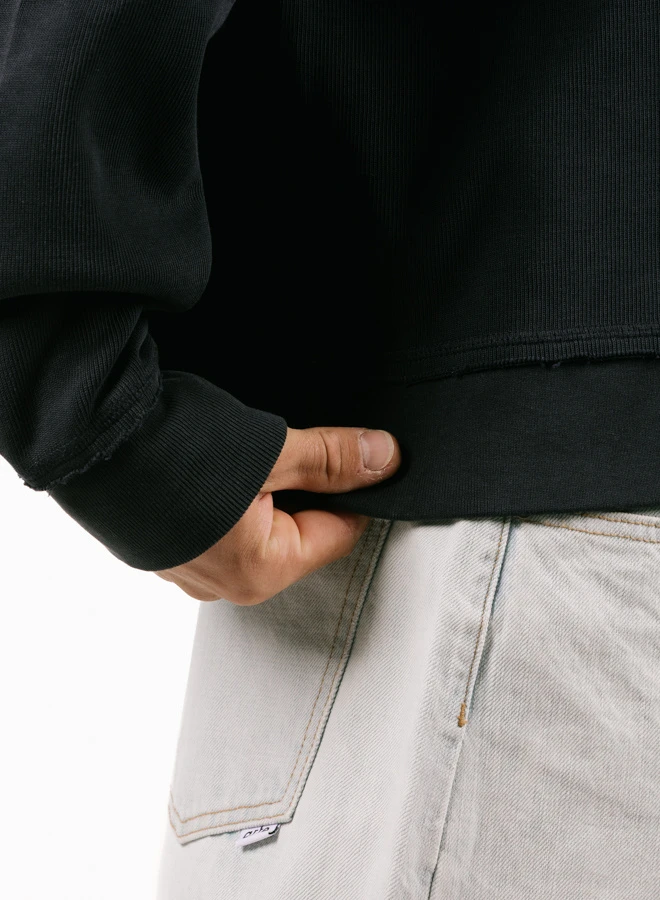 Crafted from a heavyweight 520GSM cotton-polyester blend, fabric-dyed and garment-washed for a worn-in, soft feel. Its relaxed unisex fit makes it both stylish and comfortable, with a minimalist woven label on the chest for balance.