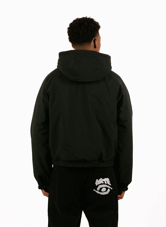 The Arte Antwerp Nylon Reversible Jacket in Black from the AW25 collection delivers versatility and streetwear sophistication. The sleek side features a tonal metal Arte logo and side pockets, while the textured side showcases kangaroo-style pockets and raglan stitching.