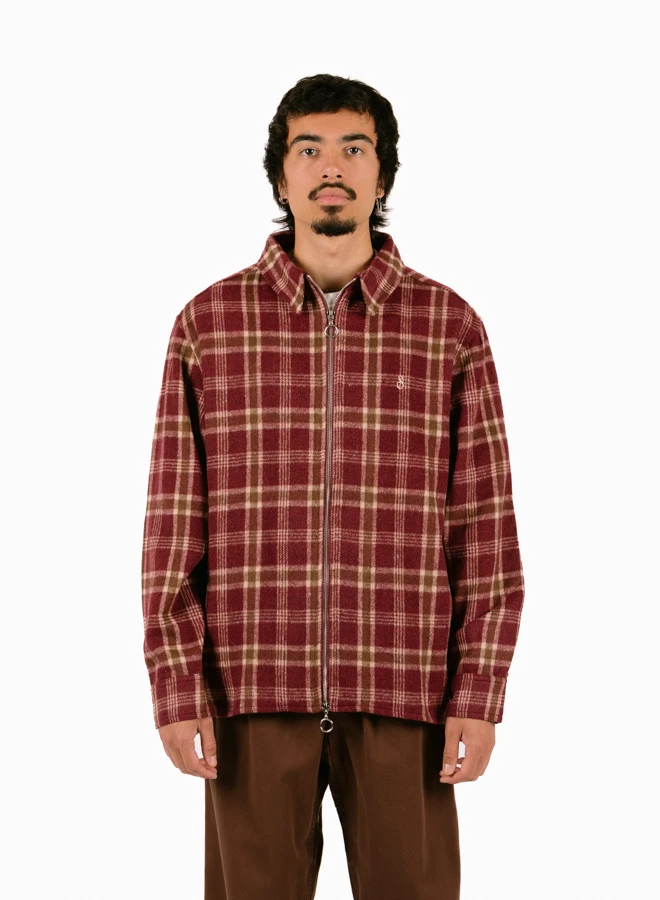 The Sabbatical Salvatore Flannel Shirt in Cabernet is part of the FW25 Vol. 5 Sentimental Education collection. Crafted from 100% polyester, this relaxed fit flannel features embroidered S-logos on both front and back. The YKK double zipper adds both functionality and a refined finish.