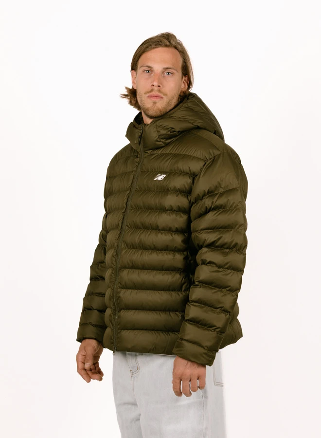 The New Balance Sport Essentials Hooded Puffer Jacket in Woodland is built for maximum function and style. Its insulating padding keeps you warm, while the hood offers added protection from wind and cold. The relaxed fit ensures comfort and mobility, making it perfect for everyday winter wear.